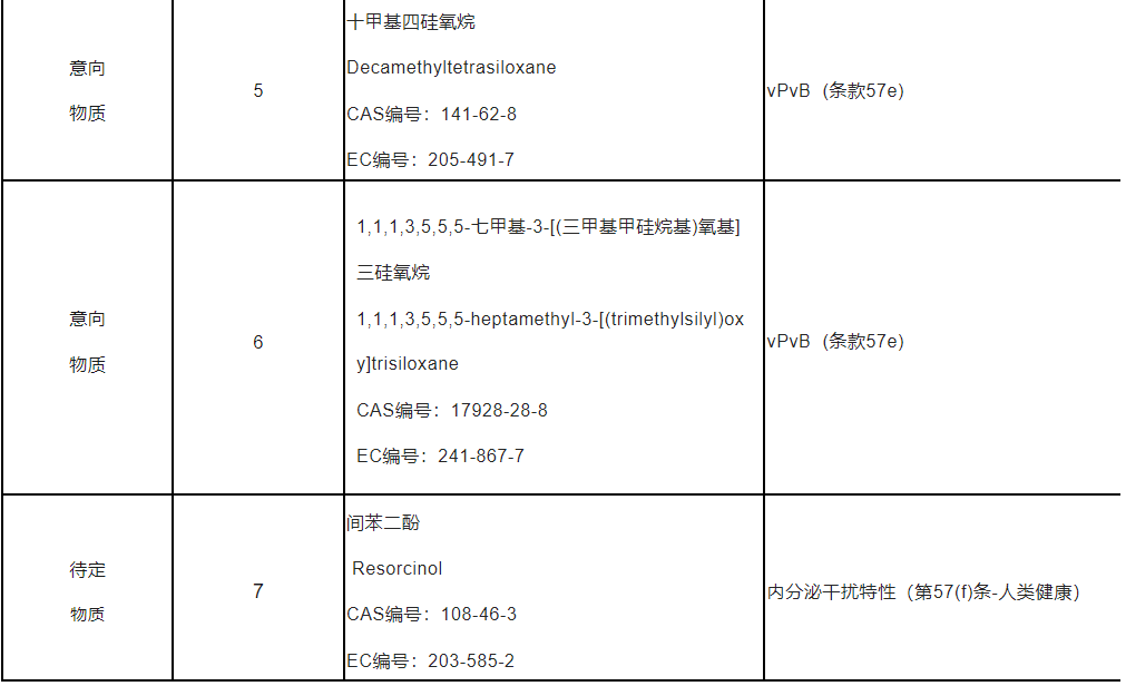 2025年2月18日,欧洲化学品管理局 ECHA 将“正己烷”添加至SVHC意向物质清单中。 该物质是由斯洛文尼亚提交的 , 目前正处在“提议方准备相关物质的卷宗”阶段,预计2025年8月4日前会提交相关档案卷宗。 至此,SVHC物质清单如下:247项SVHC候选清单物质;6项意向物质;1项( 间苯二酚 )待定物质 。
