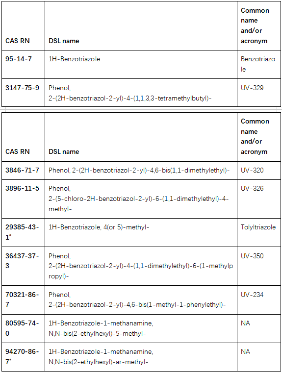 表 2 九 种苯并三唑类物质 Substances in the Benzotriazoles Subgroup