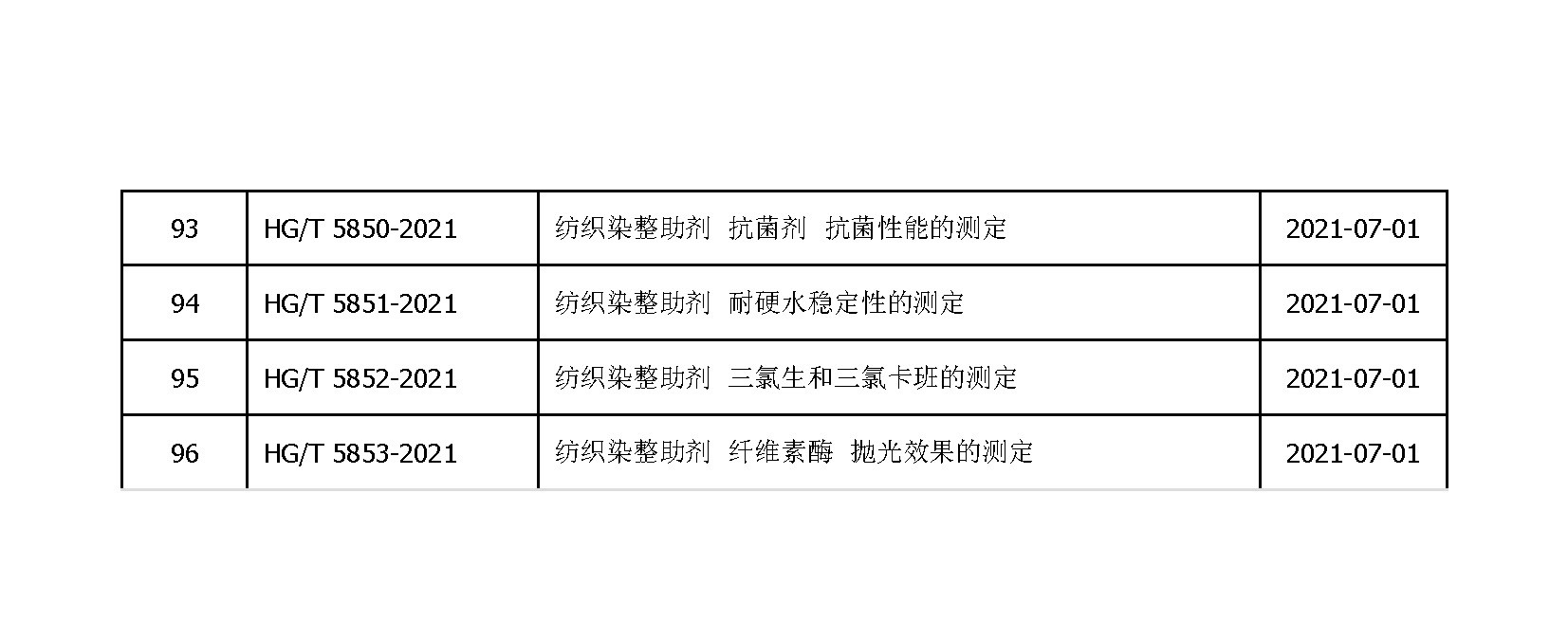 印染助剂分会已批准发布的行业标准(更新至2024年1月)