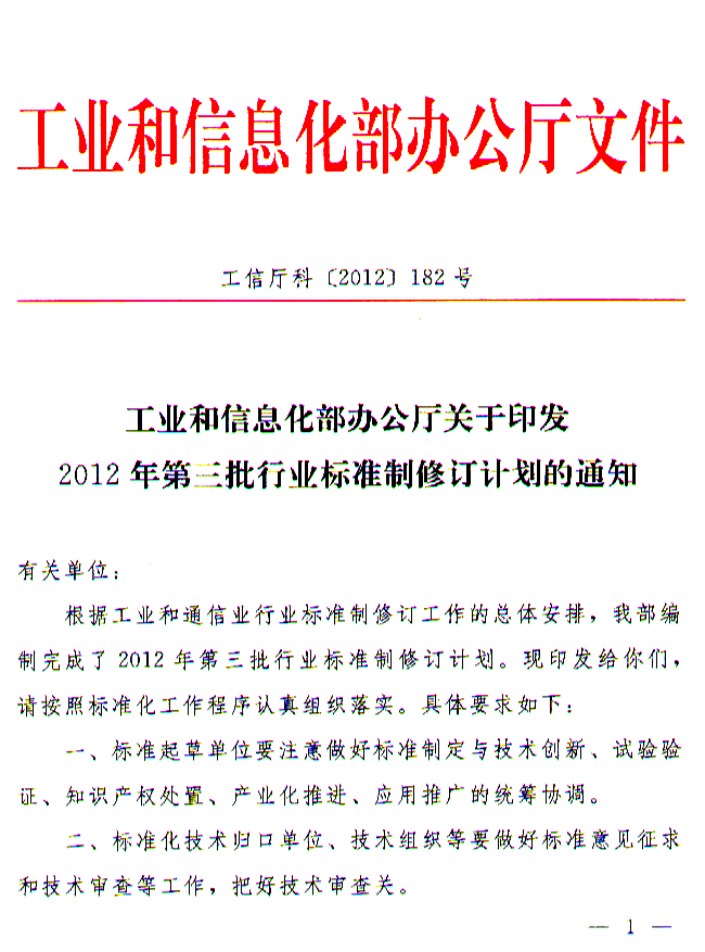 :工信部关于印发2012年第三批标准制修订计划的通知